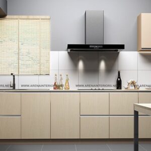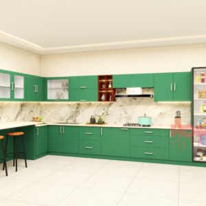 Modern kitchen fabricate using laminated marine plywood carcass and  shutters with single  color  of  Midnight blue Glossy 21022 merino laminate for both overhead cabinets and bottom storage units. kitchen can be customized as per customer requirements and according to measurements of the kitchen.